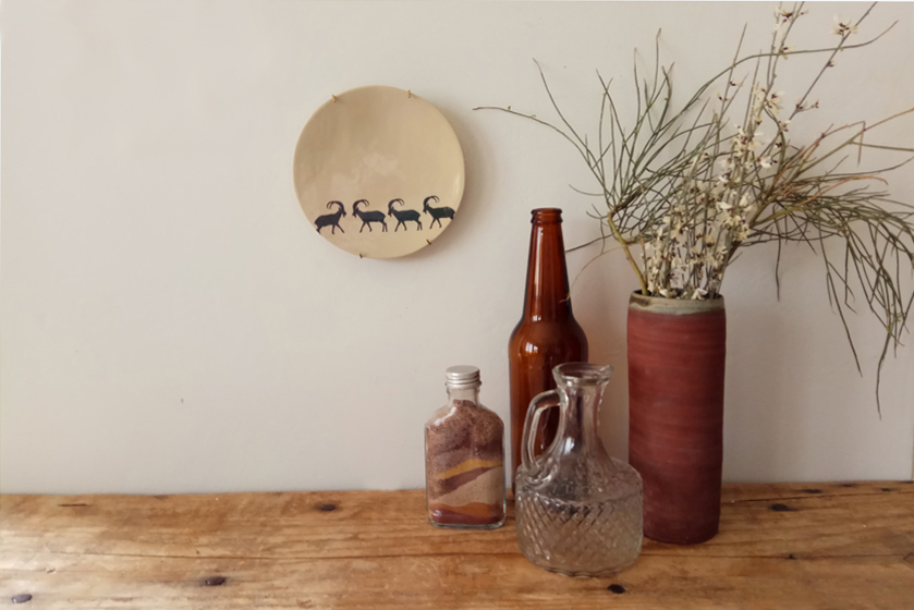 בקולקציית עיצוב הבית של דברים במדבר תמצאו צלחות לתלייה, פמוטים ועציצים במרקמים וטקסטורות שונות. הפריטים מיוצרים בעבודת יד עם המון אהבה ועם דגש על עיצוב שישתלב בקלות בכל בית ועם כל סגנון עיצובי. הצלחות ישתלבו בקיר גלריה שיגנוב את הפוקוס, העציצים ישלימו עיצוב של כל פינה יפה בבית והפמוטים מושלמים למרכז שולחן האוכל.