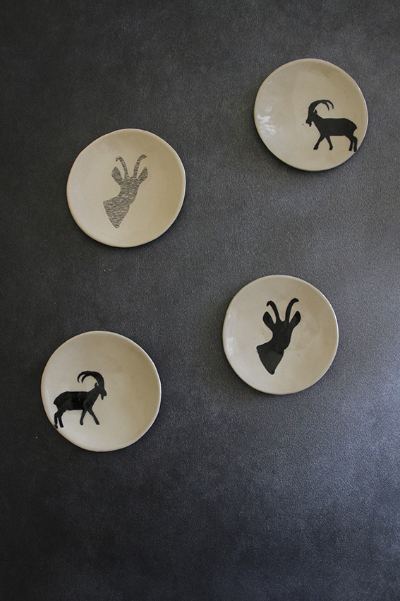 צלחת עם הדפס יעל היא המוצר הראשון, מוצר הדגל, של דברים במדבר. השילוב בין הגודל של הצלחת והיעל הופך אותה למושלמת למנה אישית ומתוקה במיוחד.