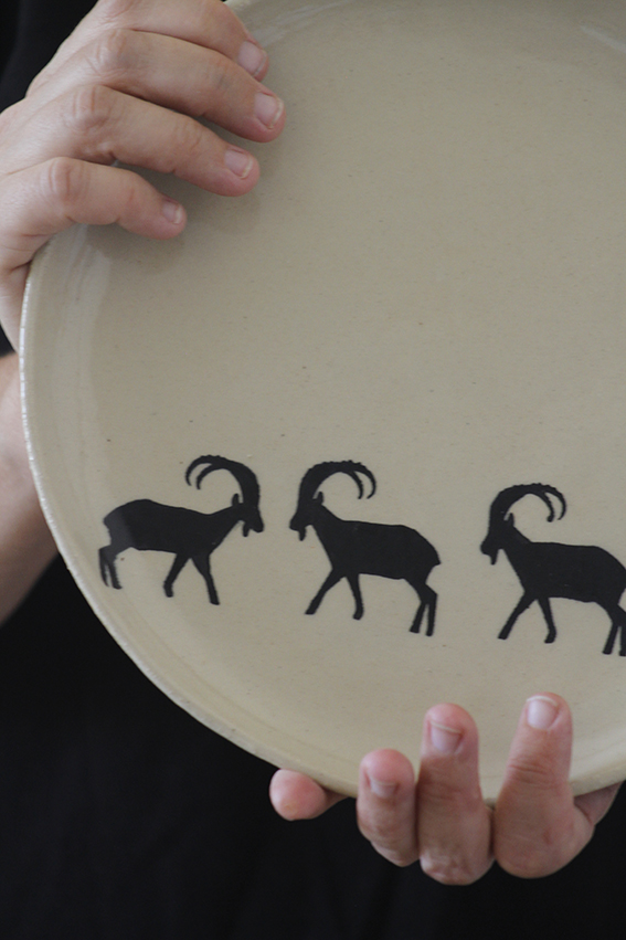 צלחת בקוטר 24 ס"מ עם שורת יעלים היא הצלחת המושלמת למנה עיקרית או להגשת מנה למרכז השולחן, בכל אירוע או ארוחת ערב משפחתית: פירות, עוגה שלמה פרוסה, ערמונים חמים מהקמין בחורף או אבטיח קר עם בולגרית בקיץ. הצלחת מיוצרת בעבודת יד ועליה הדפס של שורת יעלים. צלחת היעלים היא מתנה